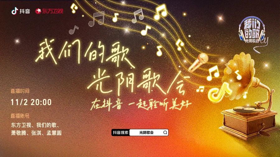 11月2日,抖音与东方卫视联合出品的线上演唱会《我们的歌·光阴歌会》在东方卫视、我们的歌、张淇、萧敬腾、孟慧圆等抖音号中进行直播。值得一提的是,这场演唱会既不是节目的常规更新,也不是节目的总决赛,从某种意义上来讲,其实是抖音向节目组定制的独家专享晚会。
