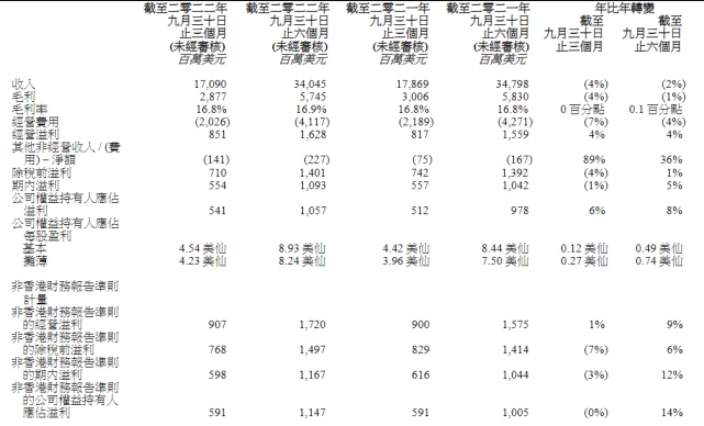 11月3日午间,联想集团在港交所披露2022/23财年中期业绩数据。财报显示,截至2022年9月30日止半年度,联想集团实现营收340.45亿美元,同比下滑2%。其中,第二财季(7-9月)营收170.9亿美元,同比下降4%。