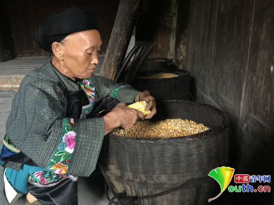 被习总书记唤做“大姐”的石爬专在家掰玉米。中国青年网记者 吴楚 摄