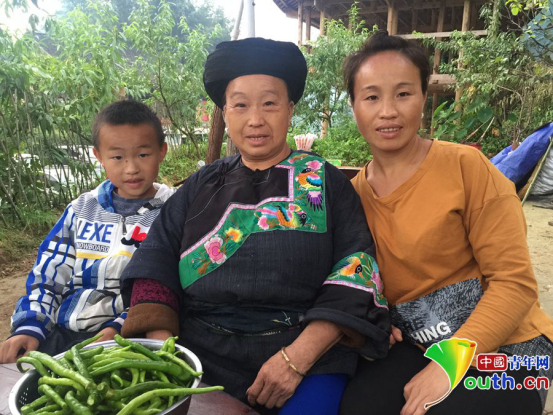 36岁的施兰珍(右)与母亲、儿子的合影。中国青年网记者 吴楚 摄