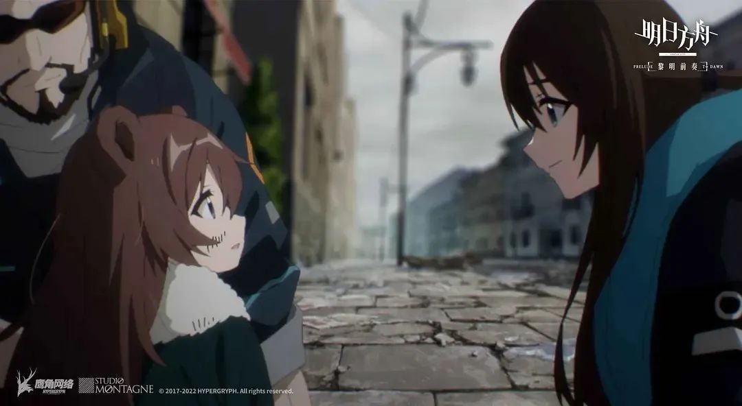 通常来说,提炼游戏角色重新写一个故事,或者在同一个游戏世界观下讲述新角色的故事,甚至讲述游戏主线之前的故事,都是在一个新故事里融入游戏元素,这对动画制作方讲故事的能力提出了较高要求。《明日方舟:黎明前奏》则是复制游戏主线情节到动画,这种相对保守的叙事模式,这或许与Yostar Pictures目前还不具备足够的剧情向动画制作经验有关。从另一方面来说,悠星网络若是想要让《明日方舟》的第一个剧情动画平稳落地,这也不失为一个稳妥之法。