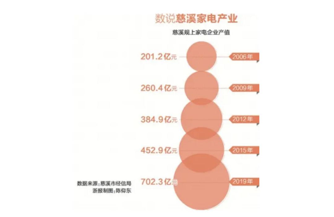 慈溪历年家电行业规模以上企业的产值 数据来源:慈溪市经信局 浙报制图:陈仰东