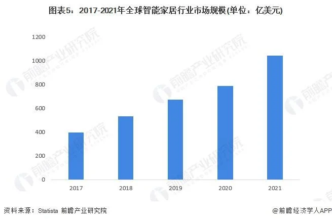 2021年,全球智能家居行业的市场规模已经达到1044.2亿美元,如何抓住这个机遇,成了慈溪家电行业转型升级的关键 图片来源:前瞻产业研究院