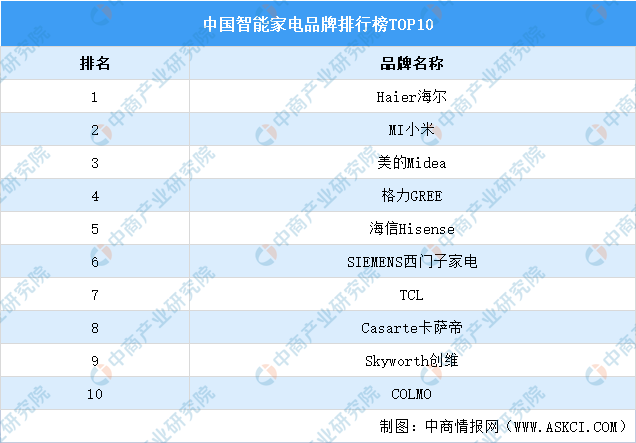 转型智能化家电较早的卡萨帝,在中国智能家电品牌中排名靠前 图片来源:中商产业研究院