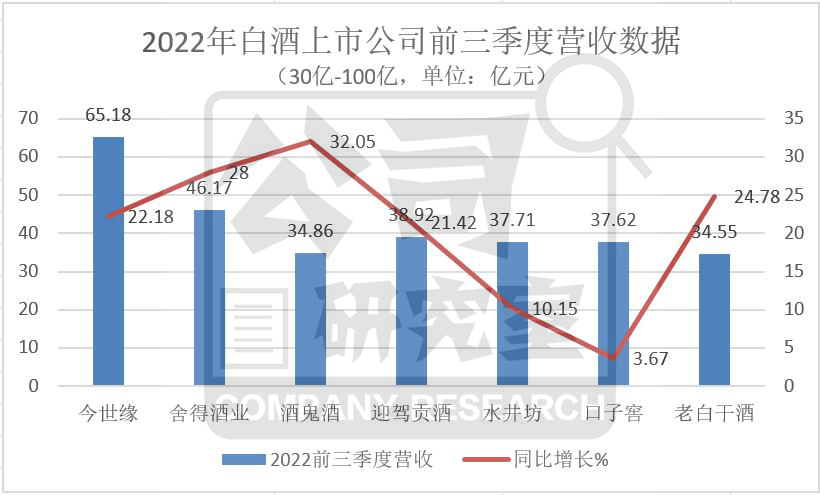 腰部7家公司中,酒鬼酒(000799,SZ)同比增速最高,在去年同期增速高达134,2%的基础上,三季度同比增速依然达到32%;口子窖(603589.SH)同比增速最差,仅3.67%,去年同期35%。