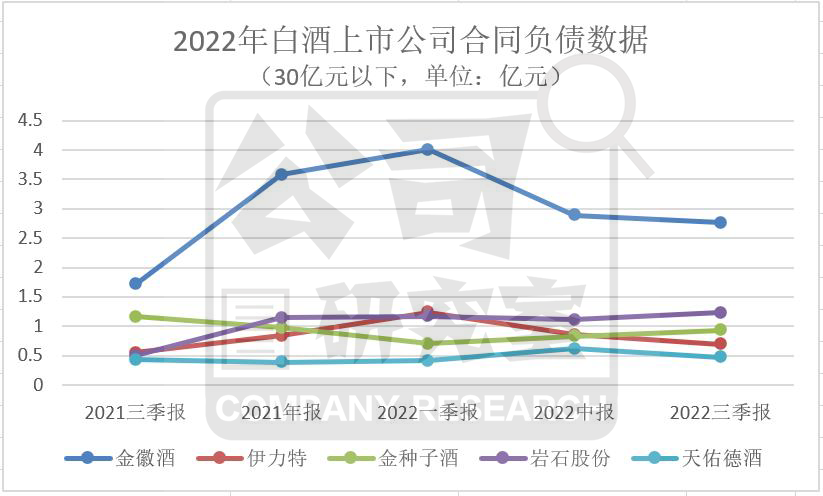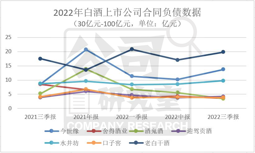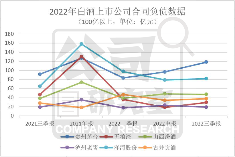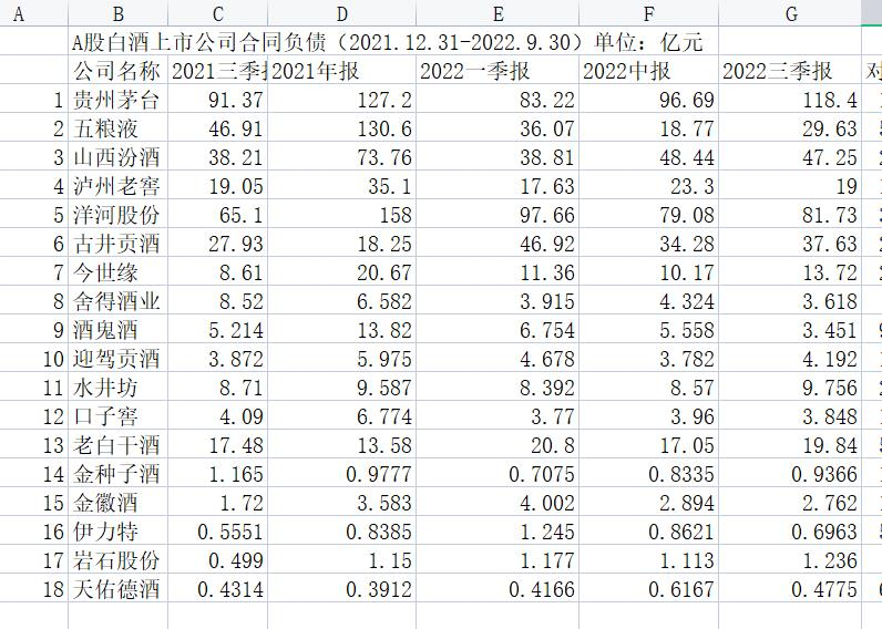 另类的是古井贡酒,2022三季报合同负债较2021年底不减反增19.38亿,如前所述,这或与这家公司的费用结算习惯有关。
