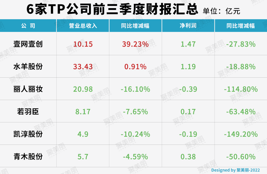 综合六家TP公司的财报,可以看到六家公司的净利润全部下滑,无一例外。除了壹网壹创和水羊股份营收有增长,其它四家营收均出现不同程度下滑。
