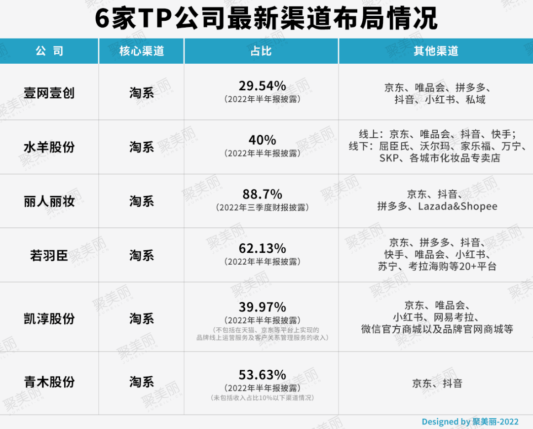 其中,若羽臣已布局抖音、小红书、快手等20+平台,水羊股份在布局抖音、快手等线上渠道的同时,也在着重改善线下渠道的经营质量;目前青木股份对外透露的渠道布局较为集中,仅有淘系、京东、抖音三个渠道。