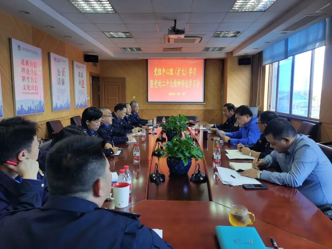 区城管执法局党组召开中心组(扩大)学习会,传达学习中央委员会报告决议、中纪委报告决议、党章修正案决议和市委、区委党员负责干部会议精神,推进学习贯彻党的二十大精神相关工作。