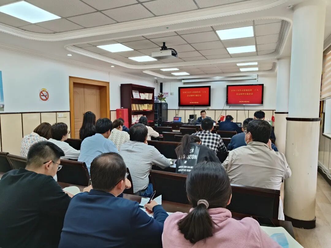 区商务委召开全体干部职工会议,通过读原文、领原理、谈体会的形式,传达学习领会党的二十大精神、市区两级党员负责干部会议精神。