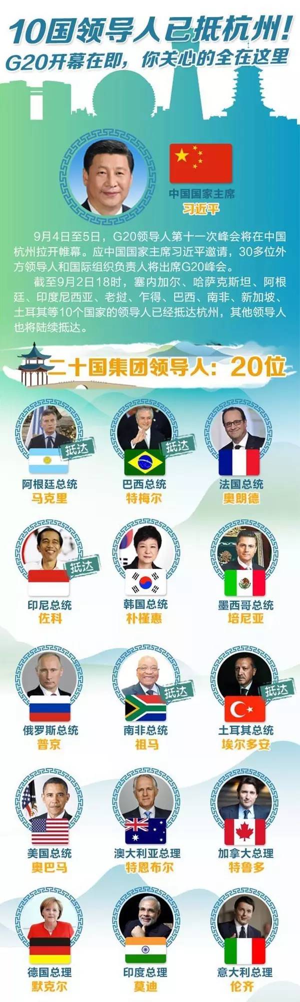 原标题:10国领导人抵达杭州!G20将这样改变你的生活
