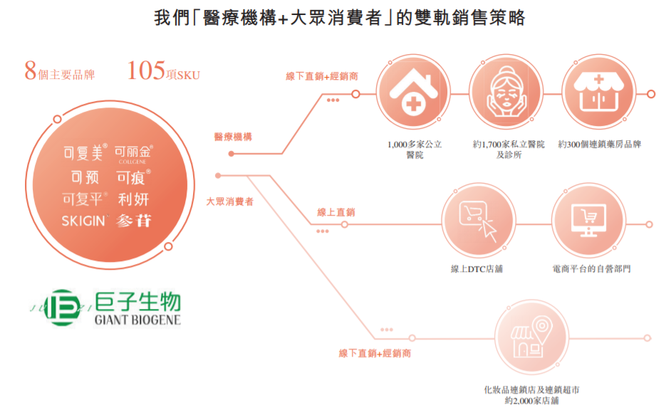 《招股书》显示,在销售策略上,巨子生物主打医疗机构+大众消费者的模式。其产品已经销售和经销至中国的1000多家公立医院、约1700家私立医院和诊所以及约300个连锁药房品牌。