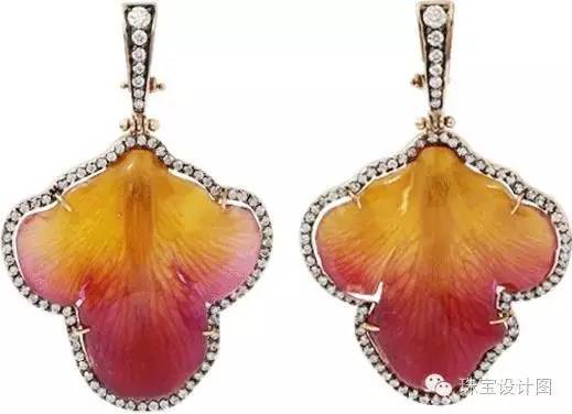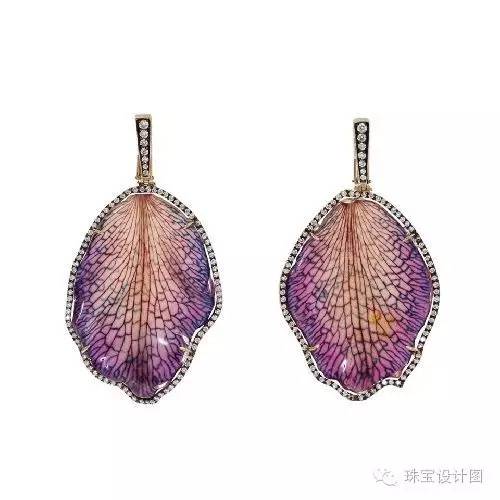 神奇了吧,是真的花瓣哦,Silvia Furmanovich用树脂包裹新鲜的花瓣作为宝石镶嵌。色彩感强烈,又有花瓣中的脉络作为肌理。