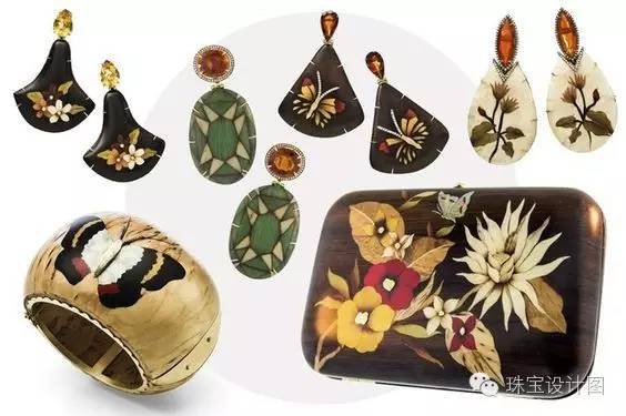 木质首饰,强烈的东方元素,木头与宝石的结合,很大胆的尝试