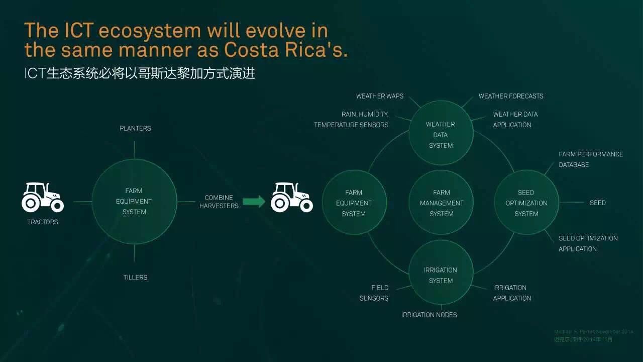 下面这张图引用的是管理大师迈克尔波特前年的论文,它显示的只是农业系统中一个简单的场景。
