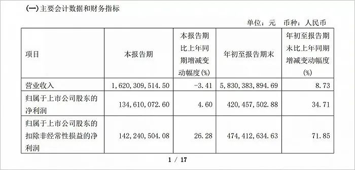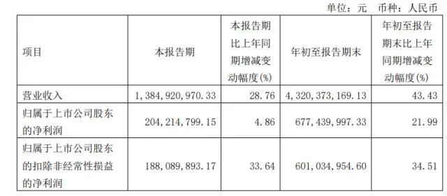 第三季度贝泰妮录得营收8.46亿元,同比增长20.65%;归属于上市公司股东的净利润为1.22亿元,同比增长35.49%。
