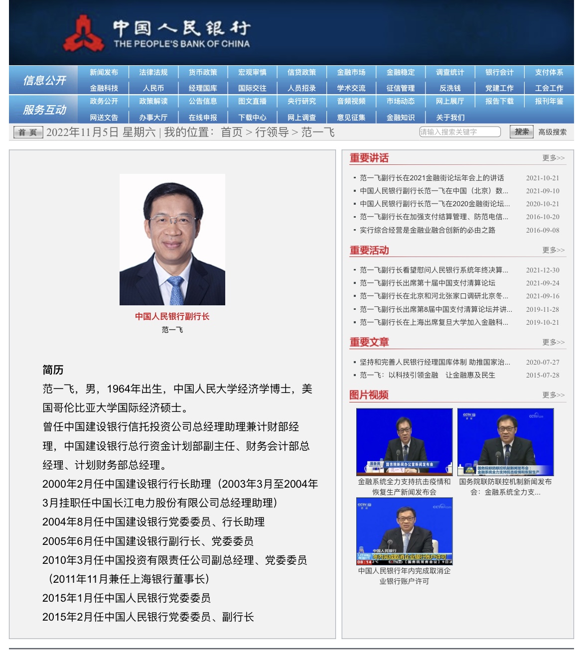 11月5日,中纪委网站公布,中国人民银行党委委员、副行长范一飞涉嫌严重违纪违法,目前正接受中央纪委国家监委纪律审查和监察调查。