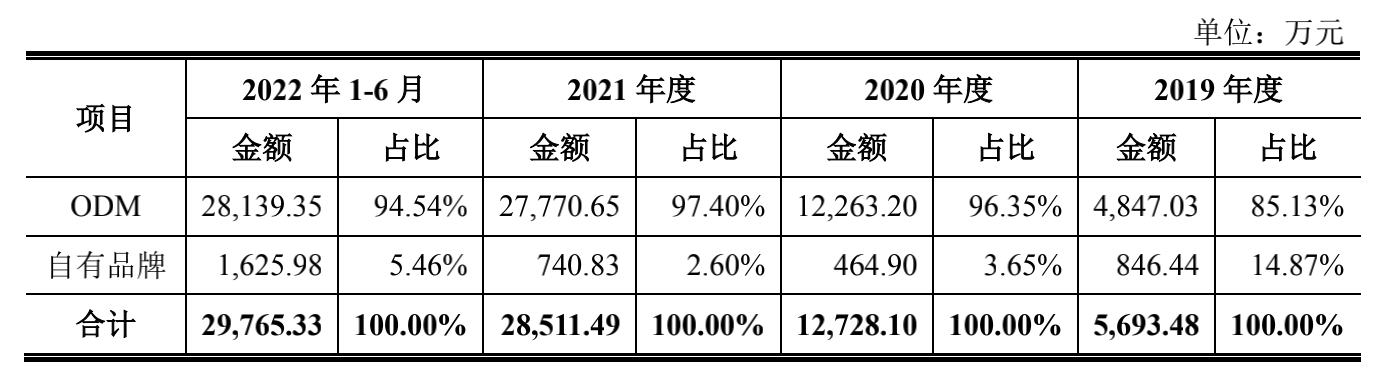 望圆科技主要作为ODM供应商,以出口为主,也有自有品牌,但销售的比例较小。公司自有品牌为“WYBOTICS”,在打造“WINNY”、“WYBOT”等产品系列。数据显示,2022年上半年,望圆科技94.54%的收入来自ODM,自有品牌收入占比为5.46%。
