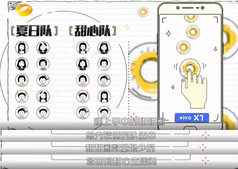 在该游戏环节中,主播们需要做出各种奇葩表情供评委观赏。现场观众则会送出甜甜圈,得分最少的队伍,将有两人被遣送回直播间。
