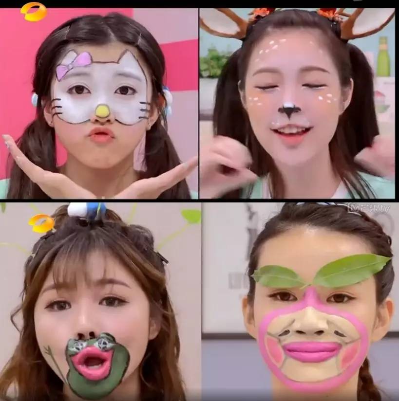 使用明星兄长们奋力夺下的有限彩妆工具,女主播们大开脑洞,在脸上进行创作。从可爱到搞怪,风格各异。