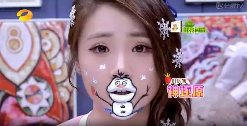 当硬糖君(微信ID:yuleyingtang)看到她创意彩妆的环节,简直是惊掉下巴,这么豁得出去,还是当年《奇葩说》里的刘思达吗?