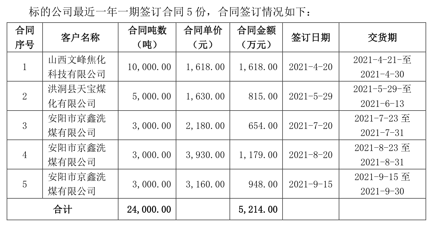 首先标的具有120万吨/年洗选煤生产能力,但2021年5月至2022年8月,标的公司销售精煤结算重量合计1.07万吨,产能利用率不足1%。
