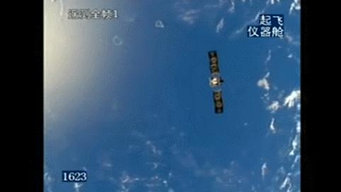 北斗卫星太阳能翼成功打开的瞬间,反射出金色的光