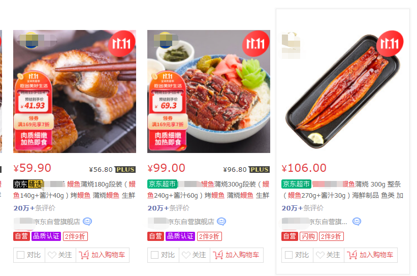 首要面临的问题就是产品形式单一,同质化严重。目前市面上最主流的鳗鱼产品主要有蒲烧鳗鱼、鳗鱼饭、鳗鱼寿司,线上鳗鱼产品的同质化体现得更为明显,粗略看去,不同平台的产品之间仅有切段、切片或者切丁之类的细微区别,在做法、味道上都没有较明显的区隔。