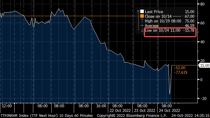 就在这种环境下,10月24日,荷兰天然气下一小时期货价格突然跌至-15.78欧元。