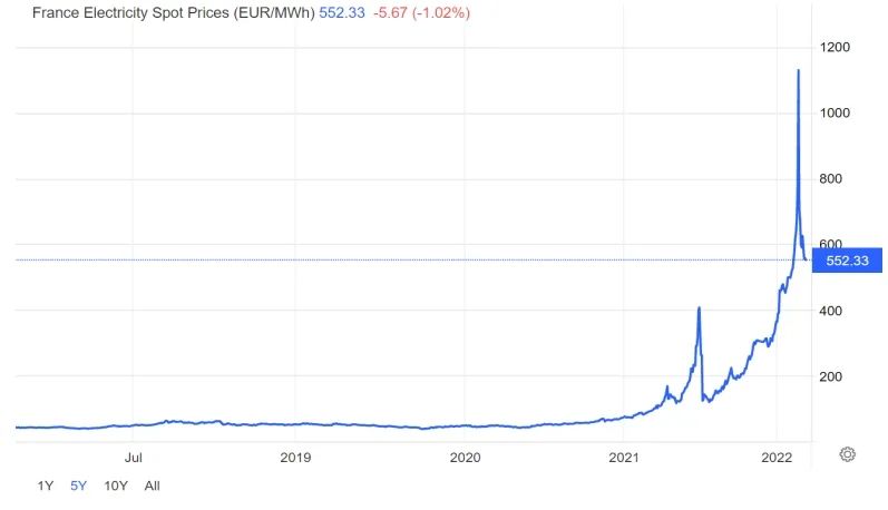 2018 年至今法国电力价格,数据来源:Trading Economics,海通国际整理