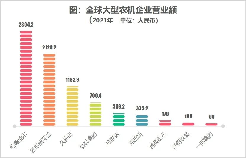 2500亿元,这个数据真的不算大,美国约翰迪尔一家公司2021年销售收入就超过了2800亿元,所以说中国的农机行业并不算是汪洋大海,准确地说是一种“地中海”式的市场。