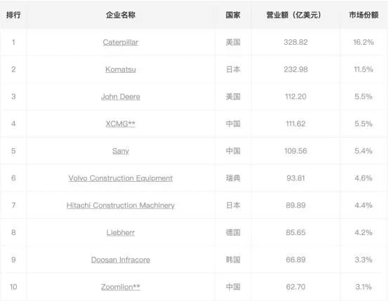 2021年约翰迪尔全口径收入440.24亿美元,其中工程机械业务收入112.20美元,农机业务位列全球第一,工程机械业务仅屈居于卡特彼勒、小松之后,位居全球第三,而从销售和体量看,约翰迪尔比工程机械行业的老大卡特多出111.42亿美元,相当于多出一个中国徐工的体量。
