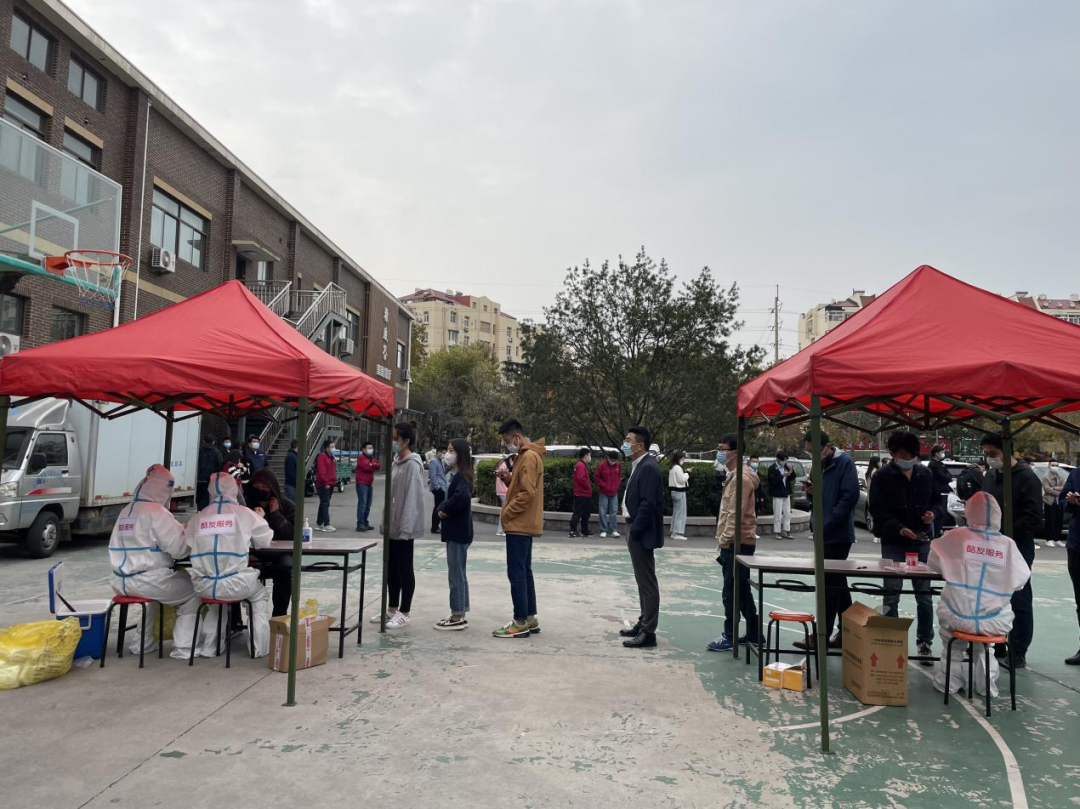 11月5日,为进一步做好应检尽检工作,早5:30到下午1:00,整整七个半小时,市北区“一线工作组”的同志们同医务工作者、社区工作者们始终奋战在一起。“七个来小时确实有点长,腰酸了,腿也不打弯了,但这是组织交给我们的任务,作为一名党员更要冲在前线,而且现在是防疫的特殊时期,更要全力以赴。”综合执法局工作人员说。