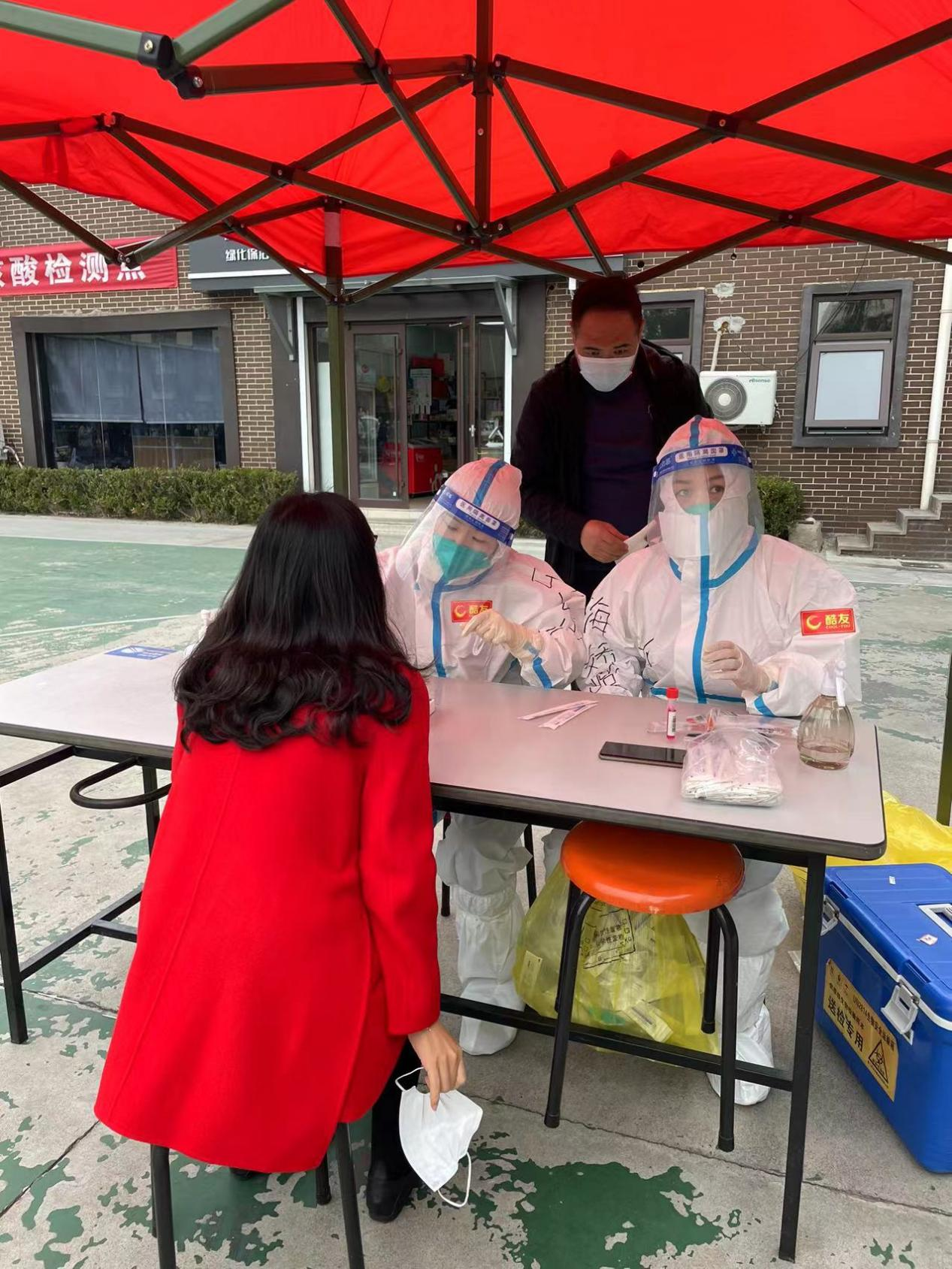青岛酷友佳味餐饮管理有限公司工会三位宝妈王青(宝宝6岁)、徐海娇(宝宝1岁)、何喜乐(宝宝1岁)主动报名加入志愿者队伍,用实际行动彰显巾帼担当,为抗击疫情贡献“她”力量。她们于11月2日到防疫办学习核酸服务技能,并于11月3日至11月6日连续在园区内开展核酸服务工作,让园区职工“足不出户”完成核酸检测,有效避免交叉感染。