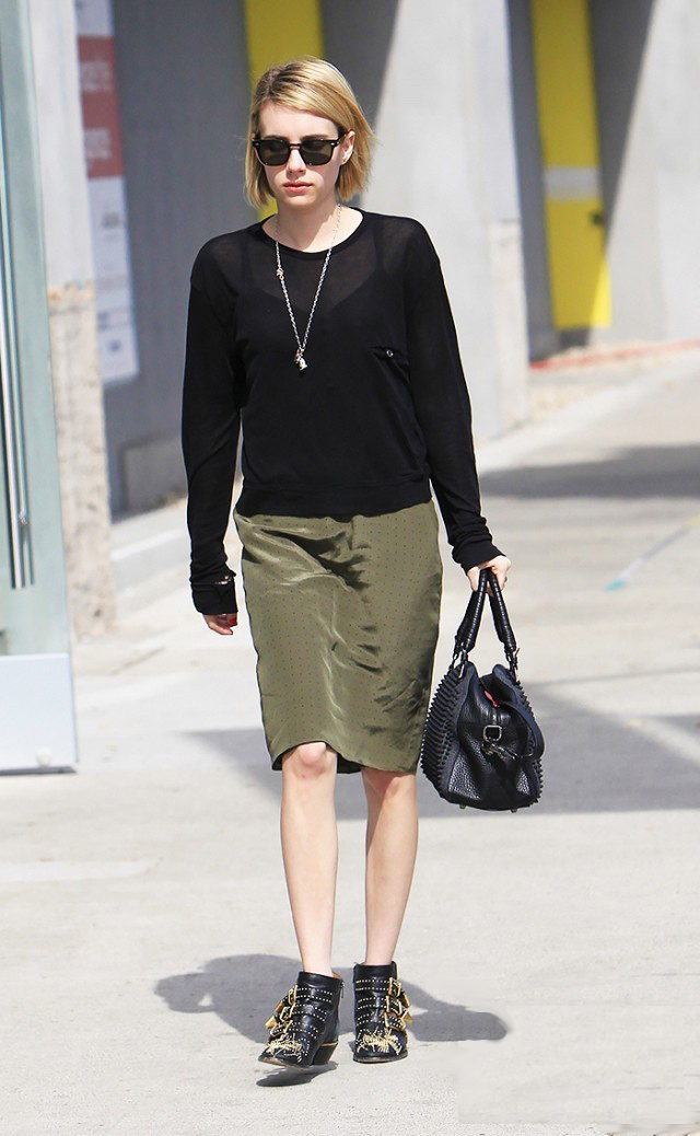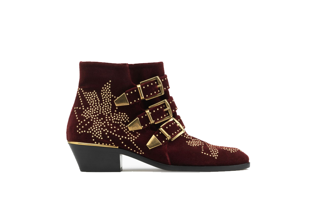 觉得全是黑色太单调,在靴子的选择上可以下点功夫,Chloé这双带有低调金属装饰的铆钉靴就被各路明星潮人演绎得相当频繁,复古又时尚,这种感觉相当微妙。