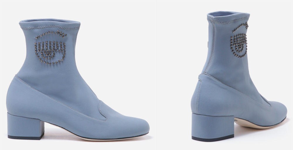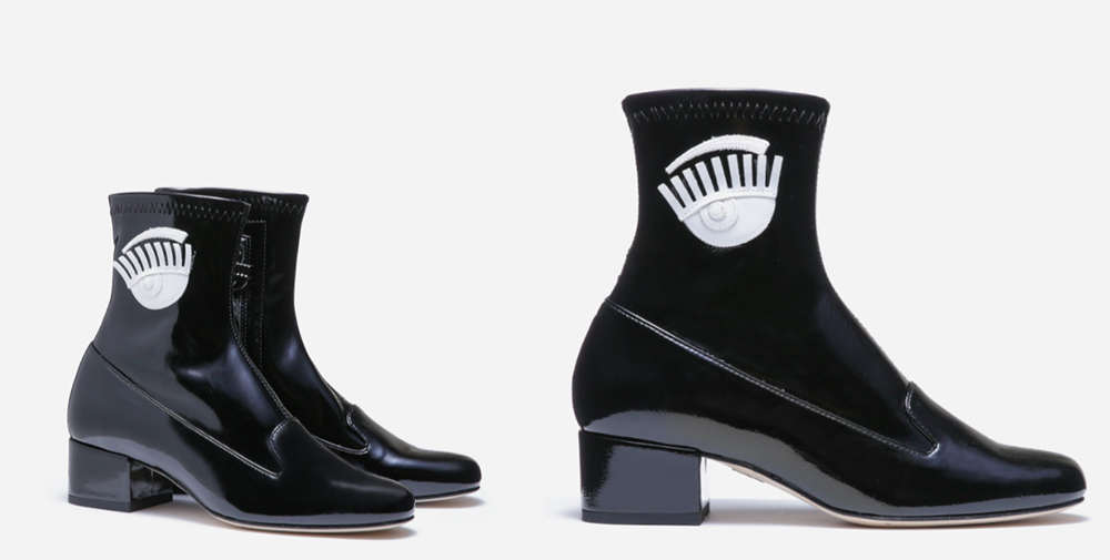 除了靴面上的装饰,也可以选择一些具有小小设计感的装饰的靴子,“宇宙博主”Chiara Ferragni的同名鞋靴品牌就具有这一特征,长睫毛眼睛是可爱别致的装饰,比起铆钉装饰的鞋面,这样的图案来得更凸显年轻气息。