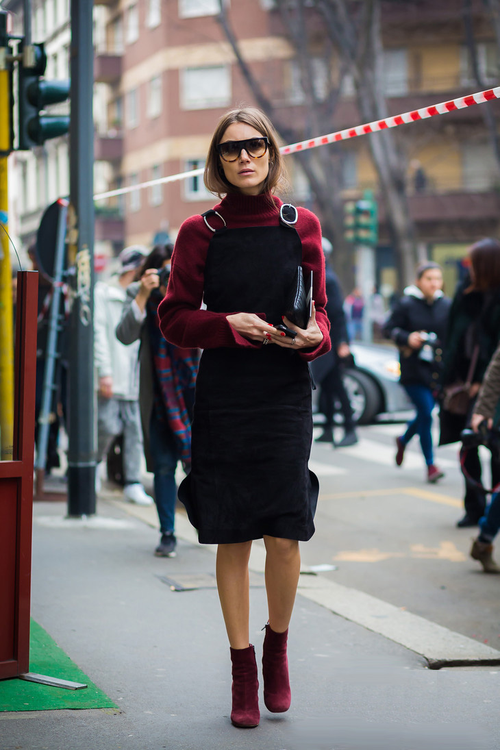 高度到小腿中间的靴子也是秋冬季一个好玩的趋势,虽然好玩,但它可比普通的踝靴难穿多了。对于小腿细度的限制是它设的第一个门槛。搭配短裙或连衣裙是最常规的穿法,大概的意思就是“哪怕我的靴子这么高,我还是能露出这么长的腿来”。