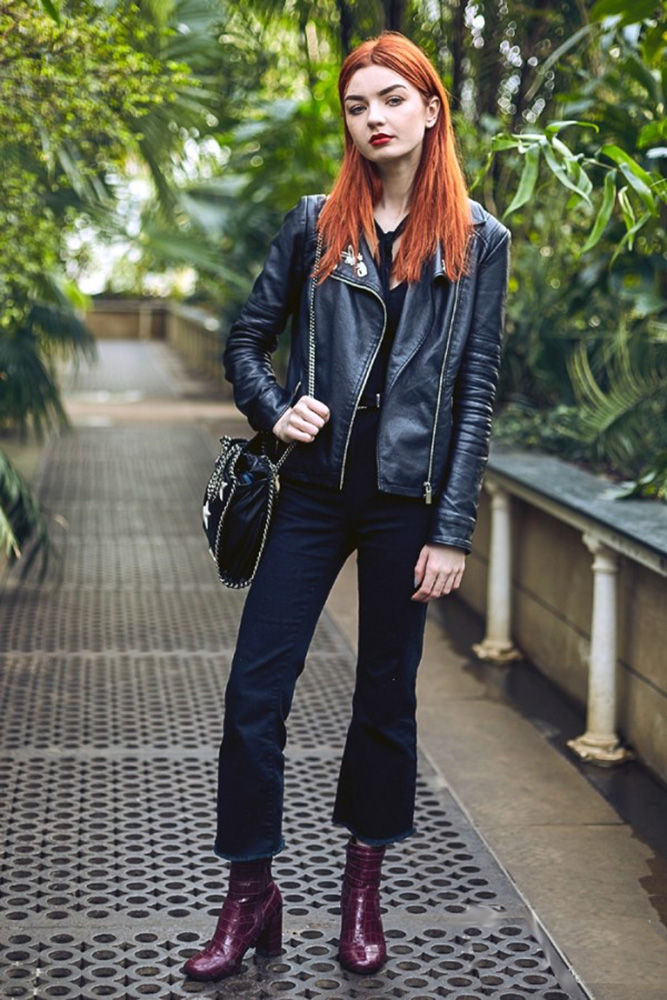 短靴当然也能露腿,且选择靴子开口比较宽大的款式更容易显得脚踝很细,这是在选择靴子的时候一个小小的细节。小腿比较粗的姑娘不建议穿短靴时搭配半裙(及膝裙),这样会将小腿肌肉放大两倍。总而言之,要露腿可以,要么裤子或裙子尽量短(大腿中间或以上的位置),要么尽量长(脚踝处),loafers玩“半吊子”相当有趣,但在短靴的搭配上,这种不长不短的手法就姑且先不玩了吧。