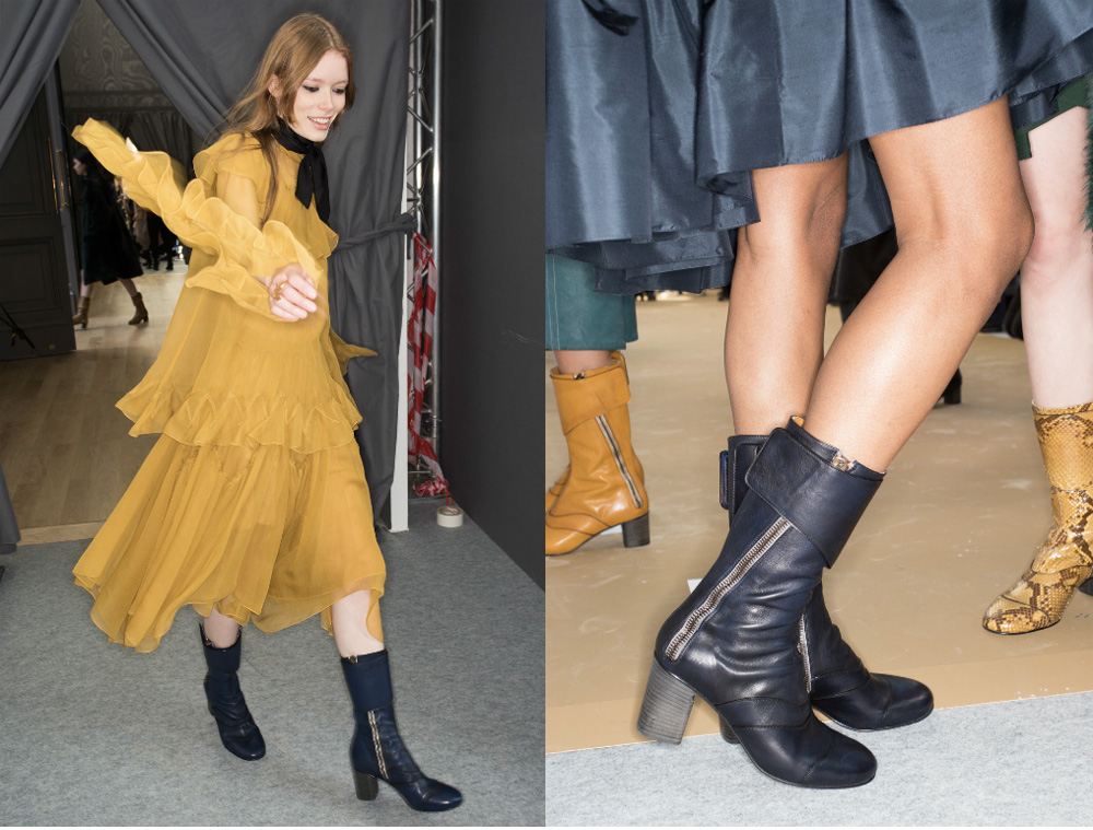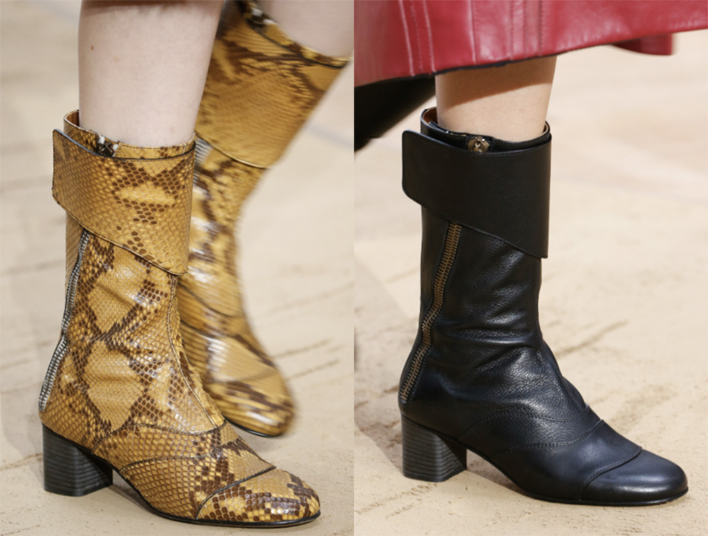 听说这种靴子会“吃腿”,让你的腿在视觉上减少10公分,但Chloé在2016年的秋冬季发布会上可是玩的不亦乐乎,搭配及踝长裙或是半裙,色彩鲜活又有趣,“瘦腿精”们完全没有在怕的。