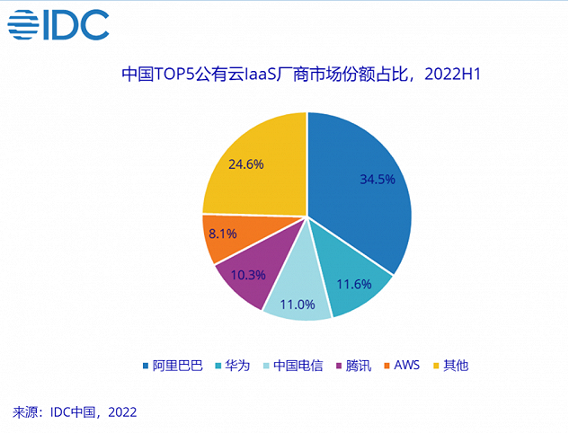 2022年10月26日,IDC发布的《中国公有云服务市场(2022上半年)跟踪》报告则显示,阿里云在IaaS市场份额减少4.1%至34.5%;IaaS+PaaS市场份额减少4.4%至33.5%。