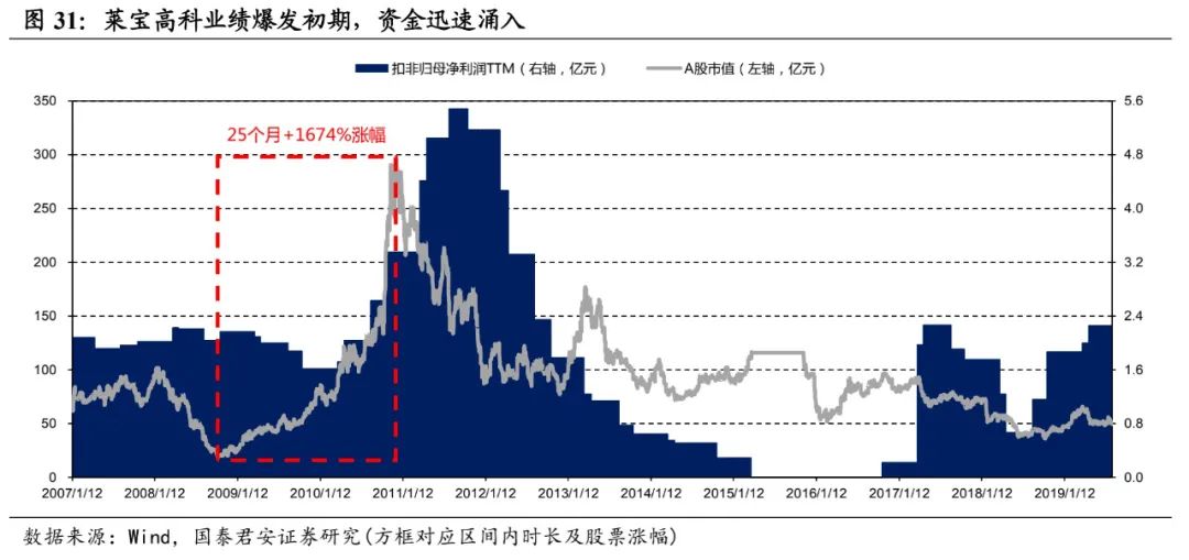 莱宝高科是2009年至2010年的苹果概念大牛股,两年时间多股价涨幅接近17倍,最高点市值近300亿元,市盈率也冲到90倍。