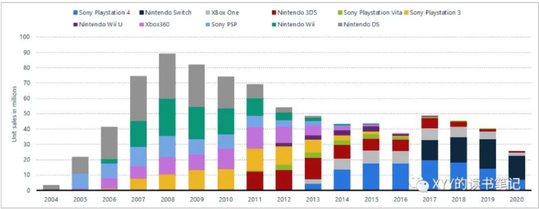 等到索尼PS2发布时,已不简单是游戏机,而是包含DVD播放、上网卡等功能,定位家庭娱乐中心。同一时期,任天堂发布第二代3D游戏机NGC,微软凭借Xbox打入主机市场。