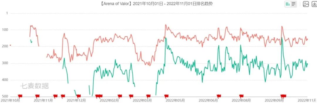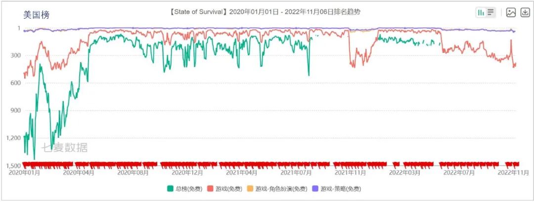 但结果却不尽人意,可以看到,大笔的推广费砸下去,《Arena of Valor》在美国免费榜上,始终在100名开外。