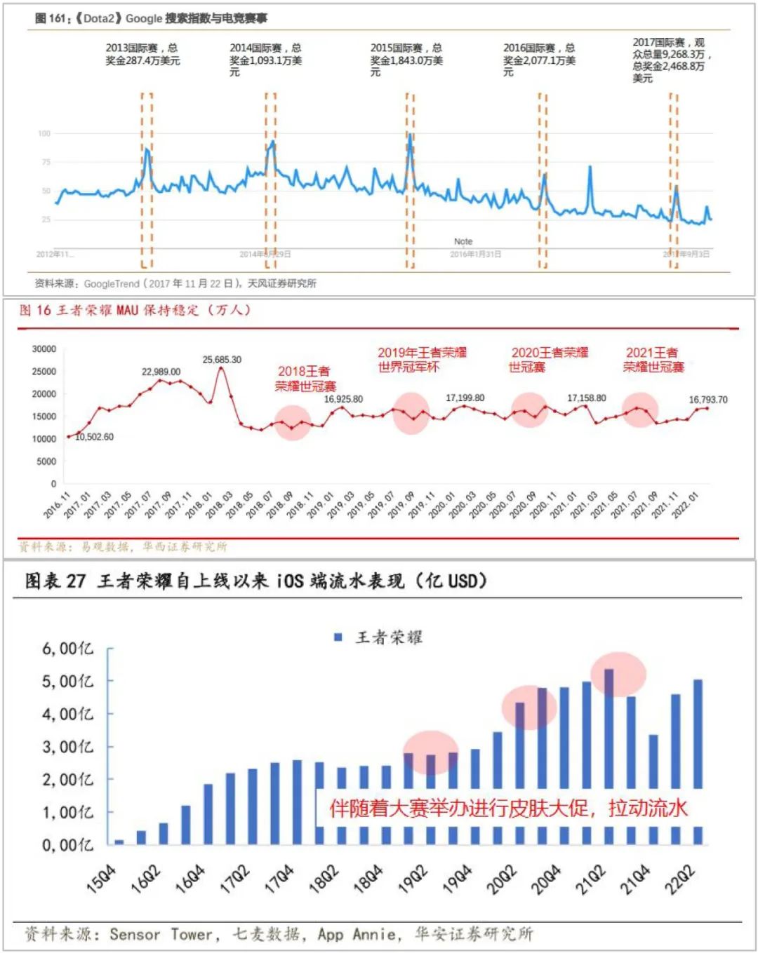 《王者荣耀》也一样,每当春季游戏热度有所下降时,腾讯举办的暑期世冠赛又会让其“回春”,并紧跟皮肤大促,拉动流水激增。