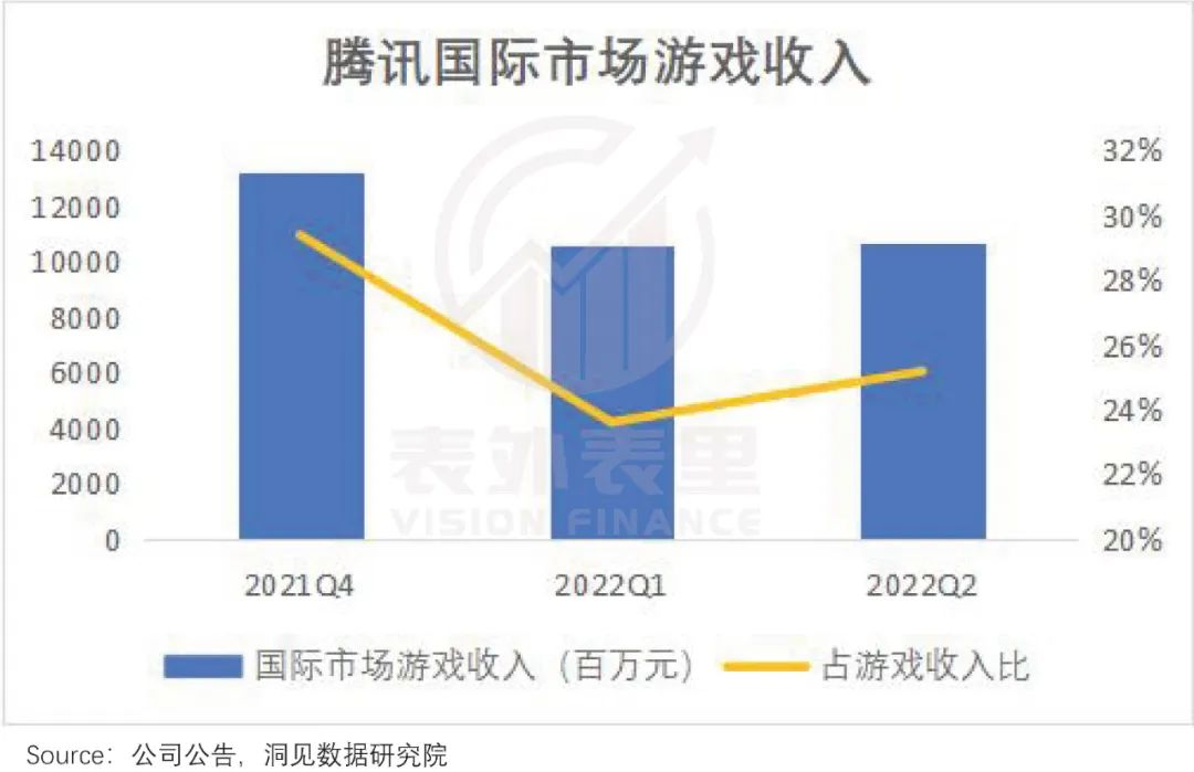 与此同时,腾讯在海外的收入主力《使命召唤》《PUBG mobile》两款游戏,收入呈现同比下降态势。青黄不接下,2021Q4-2022Q2,腾讯国际市场游戏收入占比从30%降至25%。