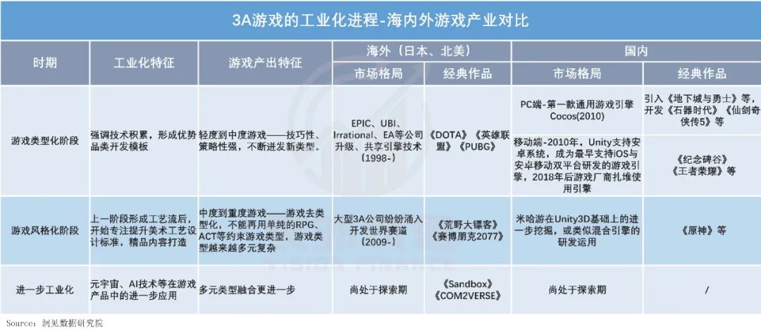 具体来看,手游市场经历了相对完整的工业化建设——从2D到3D,从类型化游戏积累模块经验到探索开放世界。
