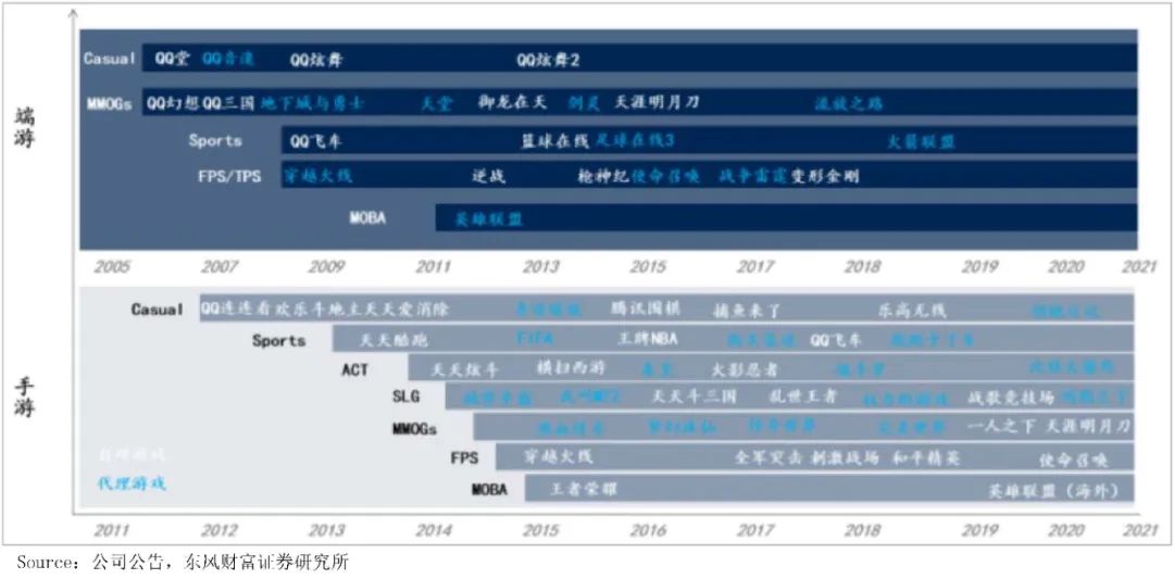 此后,国内游戏厂商开启了以代理海外为主、自研为辅的方式,走起了捷径——直到2018年左右,腾讯推出的游戏中,绝大部分仍来自海外采买。