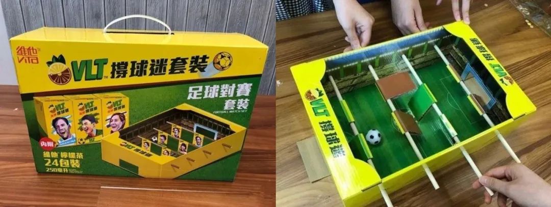 维他柠檬茶的脑洞开得也很大,直接将包装变成足球场。