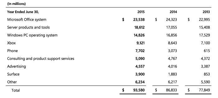 根据微软7月公布的2016年第二季度财报,Surface的营收同比增长9%,主要受Surface Book和Surface Pro 4这两款新品驱动。不过这款2012年底才诞生的硬件产品,在庞大的微软的总营收中占比极小,在2015年也还只有4%。