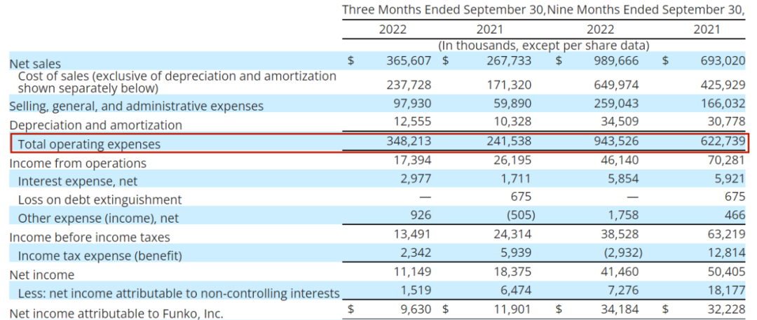 财报显示,Funko在2022年第三季度的总营业支出为3.48亿美元,同比增加44.2%,前三季度则为9.44亿美元,增加了51.5%。可以看到,成本的增速虽然比第二季度稍微放缓,但仍然跑在了销售额增长的前面。
